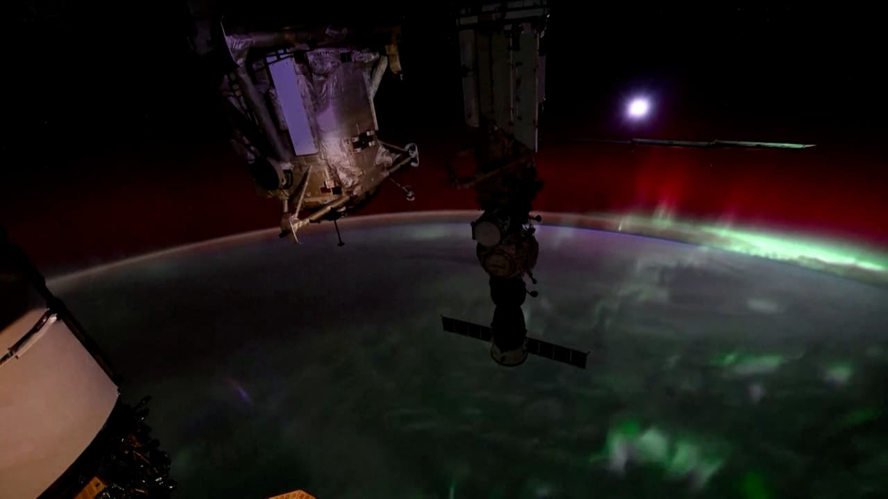 Desde la Estación Espacial Internacional este timelapse pudo capturar las cautivadoras auroras rojas y verdes que posteriormente muestra como la Luna se pone antes de la llegada del amanecer. Más información en UnivisionNoticias.com.