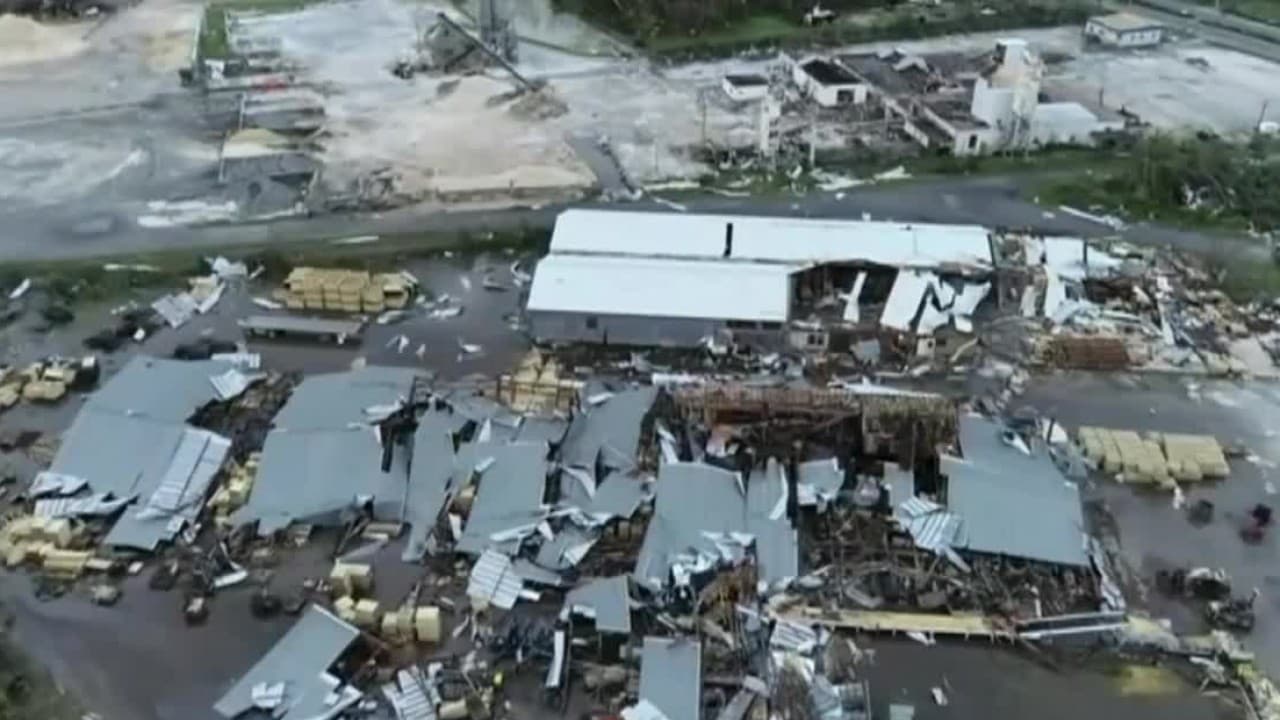 El ojo del huracán llegó a la ciudad poco después del mediodía del miércoles, cortando árboles a la mitad, removiendo los techos de sus soportes y lanzando remolques de camiones y autos como si fuesen juguetes.