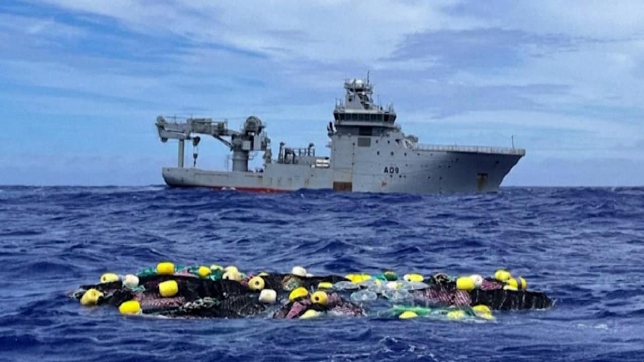 Las autoridades de Nueva Zelanda mostraron la droga incautada, con un valor aproximado de $316 millones de dólares, flotando en una red antes de su recuperación en las aguas del Pacífico. Los agentes dicen que a pesar de no haber detenidos por el momento, la incautación significa un gran golpe.