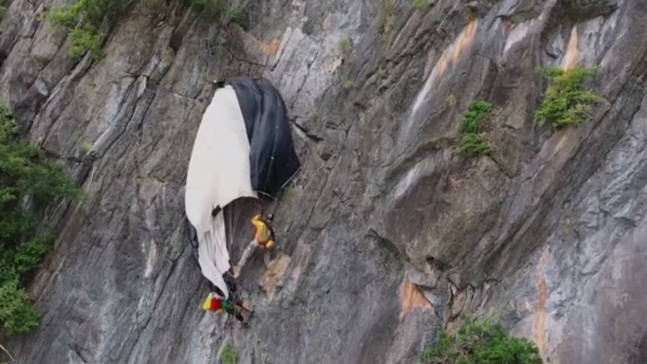 Así rescataron a un saltador atrapado más de cinco horas con su paracaídas en un acantilado tailandés