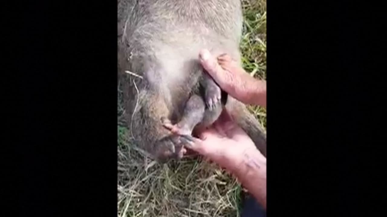 Así rescataron a una cría de marsupial de la bolsa de su madre que murió en una carretera