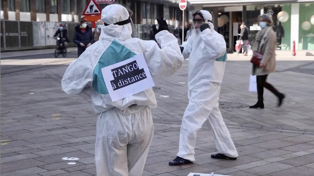 Pese a las medidas sanitarias y a las restricciones por covid-19, dos bailarines de tango lograron realizar una pequeña actuación en una calle de Ginebra. Aunque debieron hacerlo sin música y respetando el distanciamiento social, el objetivo de los artistas es reclamar la reapertura de los espacios culturales, cuyo cierre ha perjudicado a los trabajadores del sector y mantiene a muchos en el limbo.