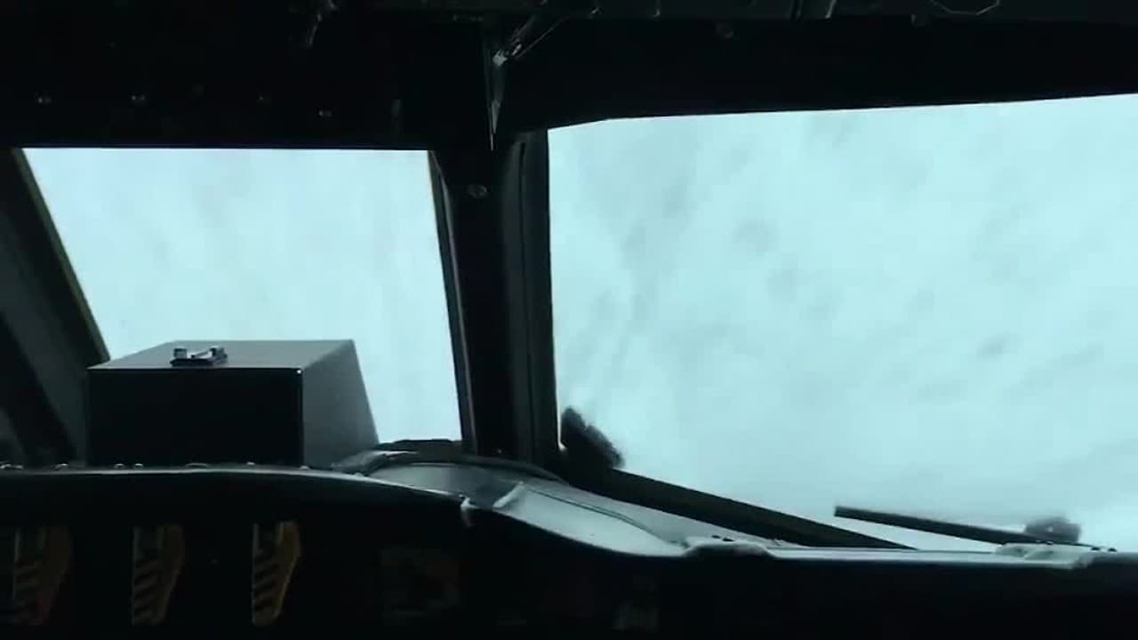 Estos aviones ayudan a recoger información clave en el rastreo de las tormentas y esta es la vista cuando el mismo entra en medio de la tormenta.