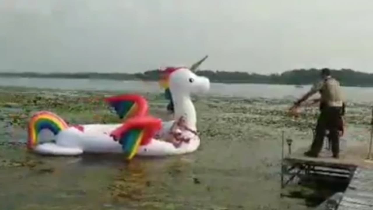 Así tuvieron que rescatar a cuatro mujeres varadas sobre un unicornio inflable en Minnesota