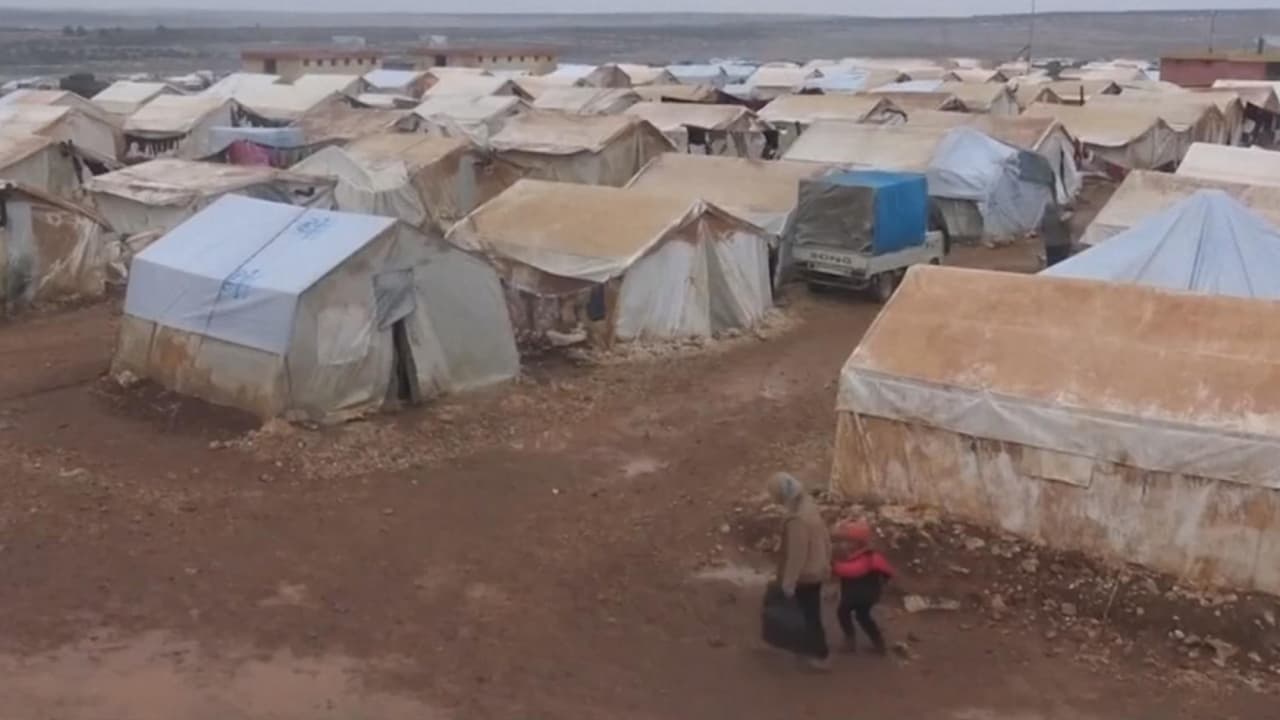 Unos videos que fueron compartidos en las redes sociales el día de Navidad muestran cómo los ciudadanos desplazados sirios se enfrentan al invierno en campamentos improvisados.