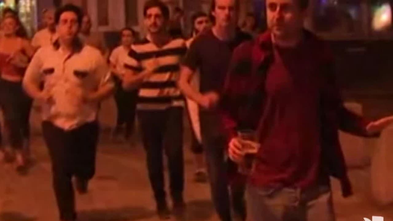 Las imágenes de televisión mostraron a una multitud de gente huyendo del ataque en el que fueron asesinadas siete personas, pero entre toda esa multitud, llamó la atención un hombre caminando lentamente con un vaso lleno de cerveza en la mano, tratando de no derramarlo.