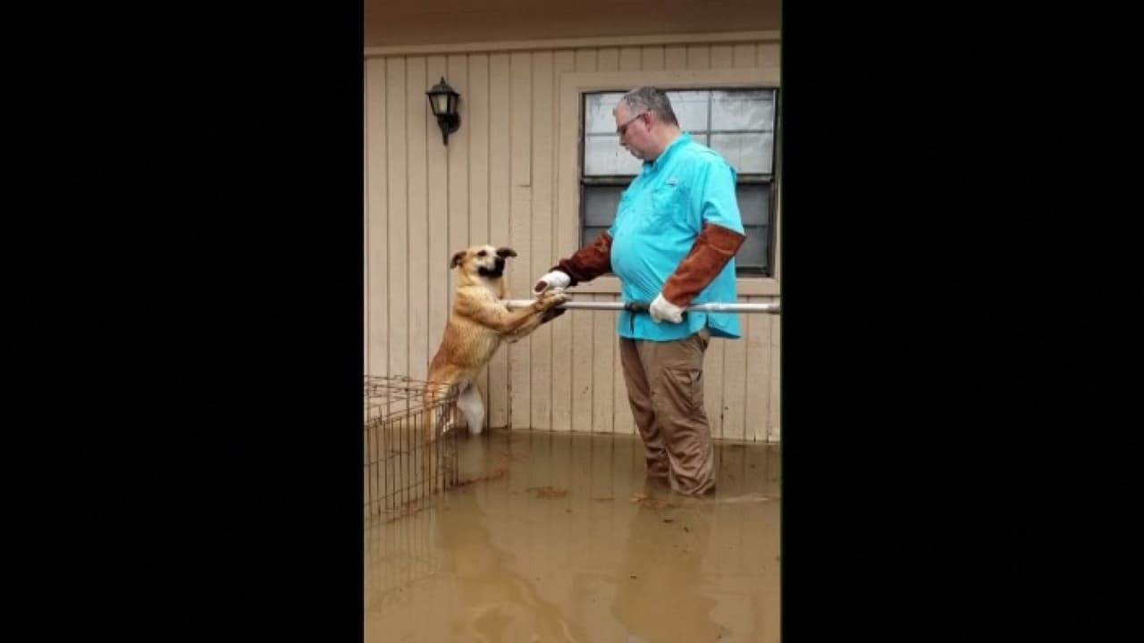 Atrapados en el agua: Salen a rescatar perros abandonados en las inundaciones de Mississippi