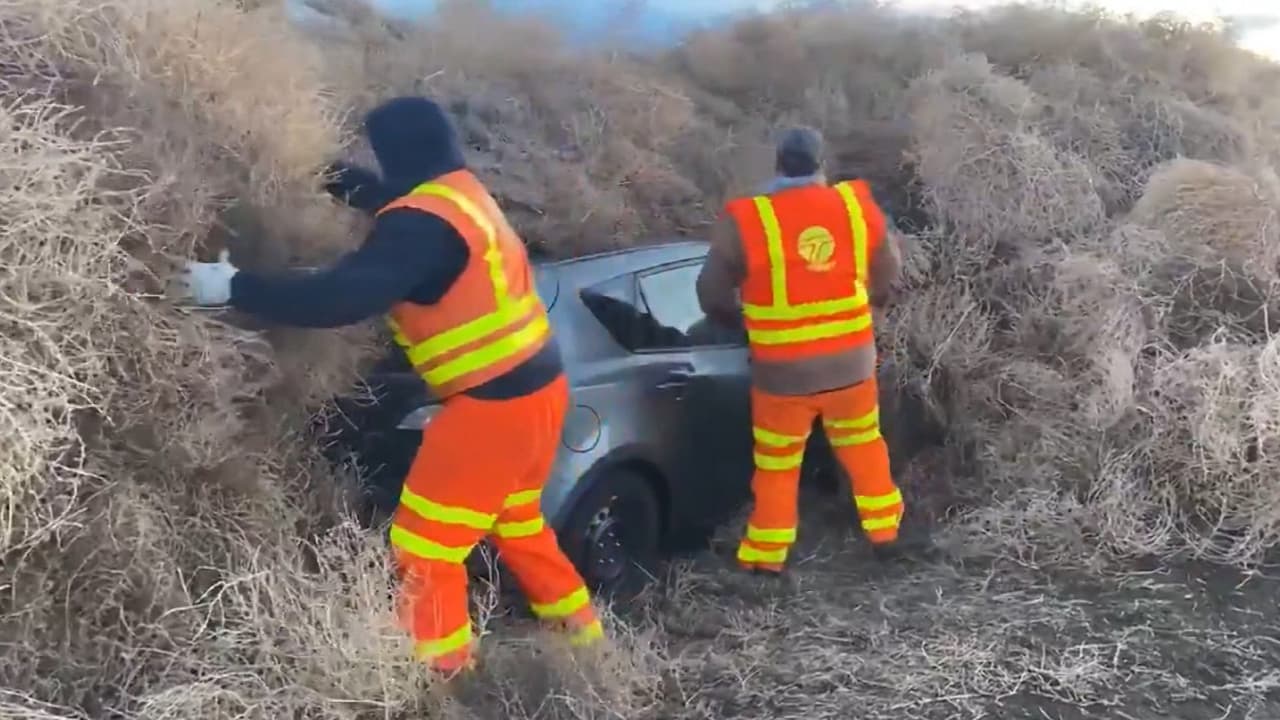 Atrapados por plantas rodadoras: Así pasaron la noche de Año Nuevo en medio de una autopista