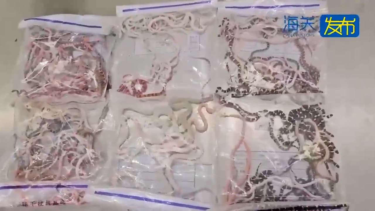 Un hombre cuya identidad se desconoce fue detenido cuando intentaba introducir a más de un centenar de serpientes a China mediante un paso para los pasajeros que no declaran objetos. Sigue las últimas noticias en Univision.