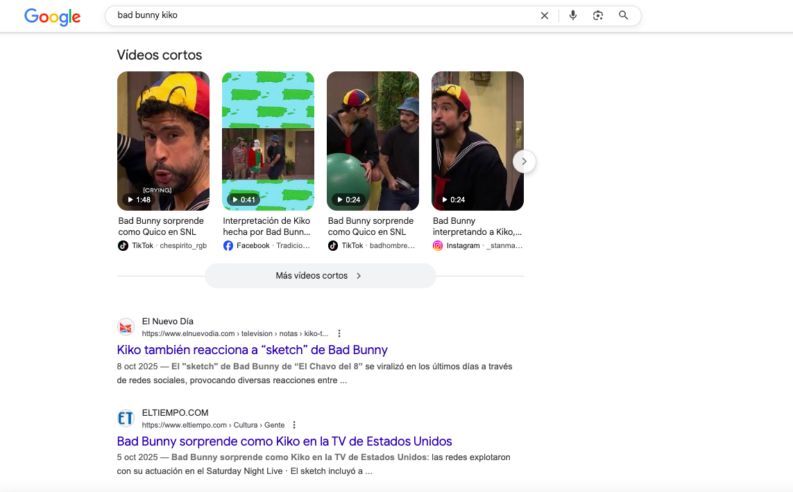Con este dato, ya descubrimos que no es posible que Villagrán dijera en esa entrevista que demandaría al puertorriqueño por su interpretación de ‘Quico’, ya que la actuación del cantante fue televisada en SNL exactamente dos meses después: el 4 de octubre de 2025.