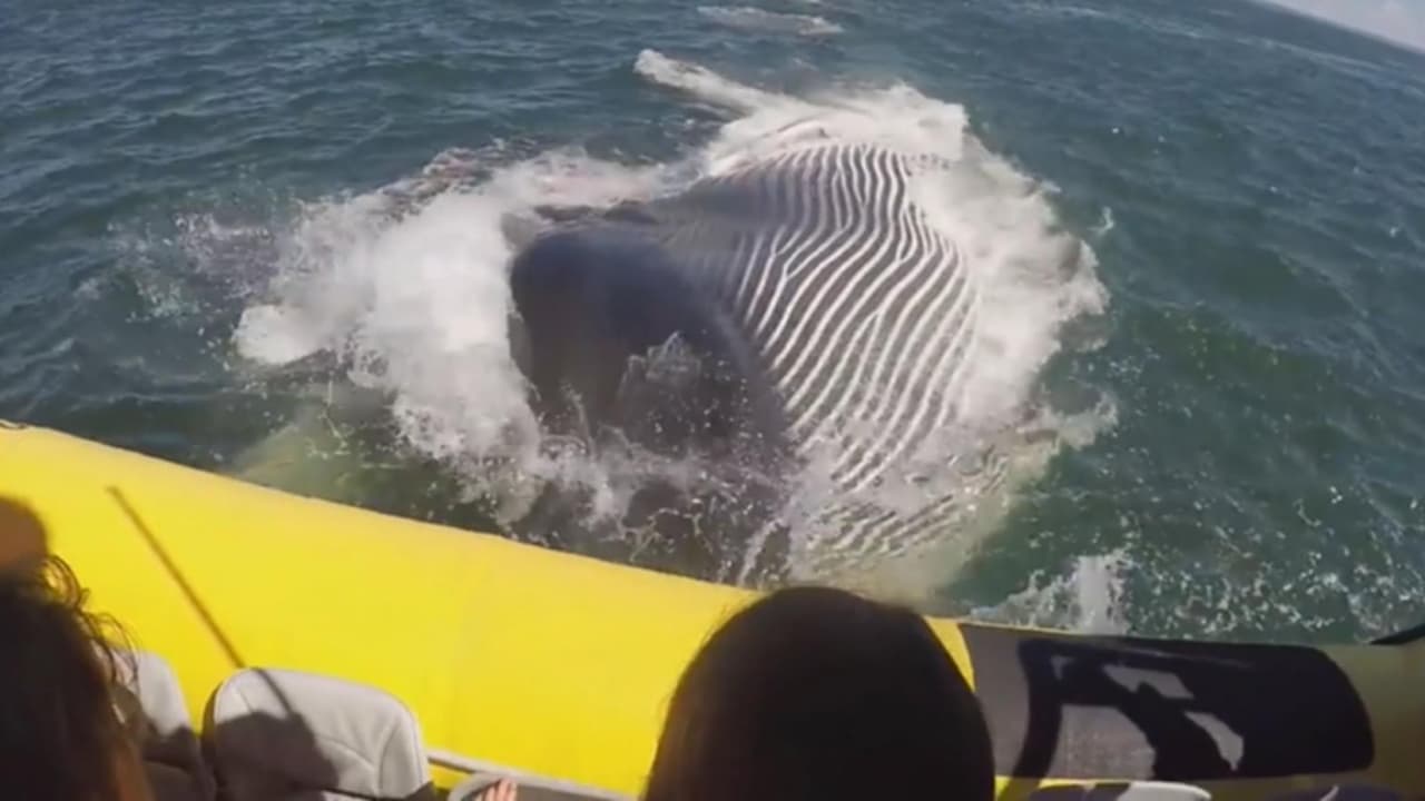 La ballena apareció en el medio de una excursión en el Río St. Lawrence en Quebec.