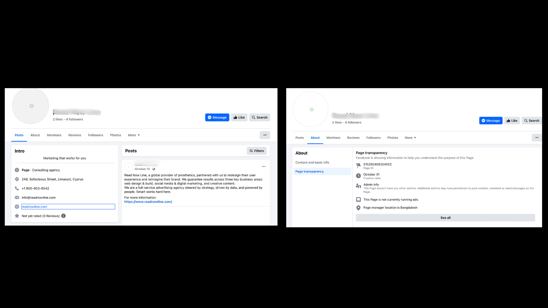 En nuestra verificación, lo primero que identificamos es que el perfil que promueve la supuesta inversión no pertenece a la institución bancaria mencionada, sino a una página que se describe como una “agencia de consultoría”, creada el 30 de octubre de 2024, con solo cuatro seguidores. Estas suelen ser características comunes de cuentas automatizadas o bots utilizados para difundir desinformación.