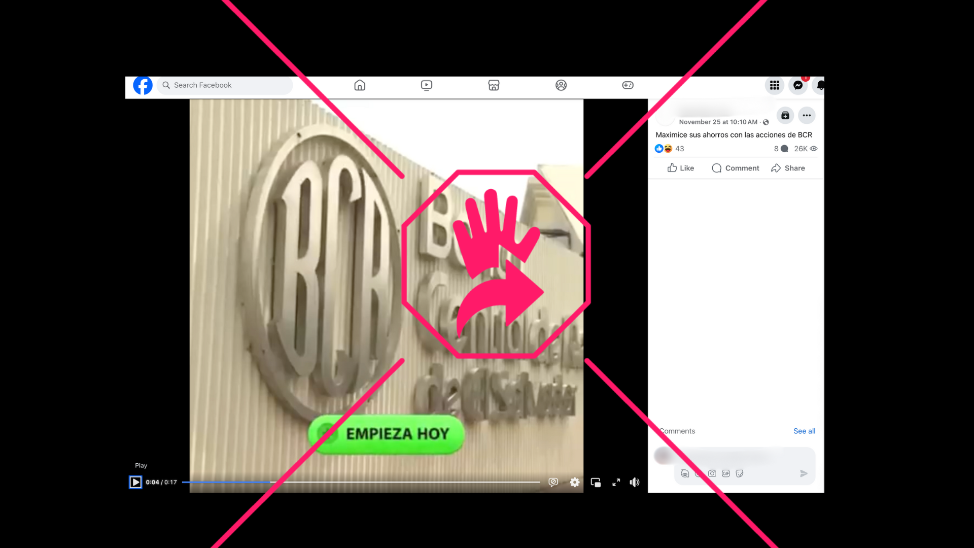 “Se lanzó una nueva plataforma para invertir en el Banco Central de Reserva de El Salvador”, dice el audio de un video que ha sido reproducido más de 26,000 veces desde su publicación el 25 de noviembre de 2024.