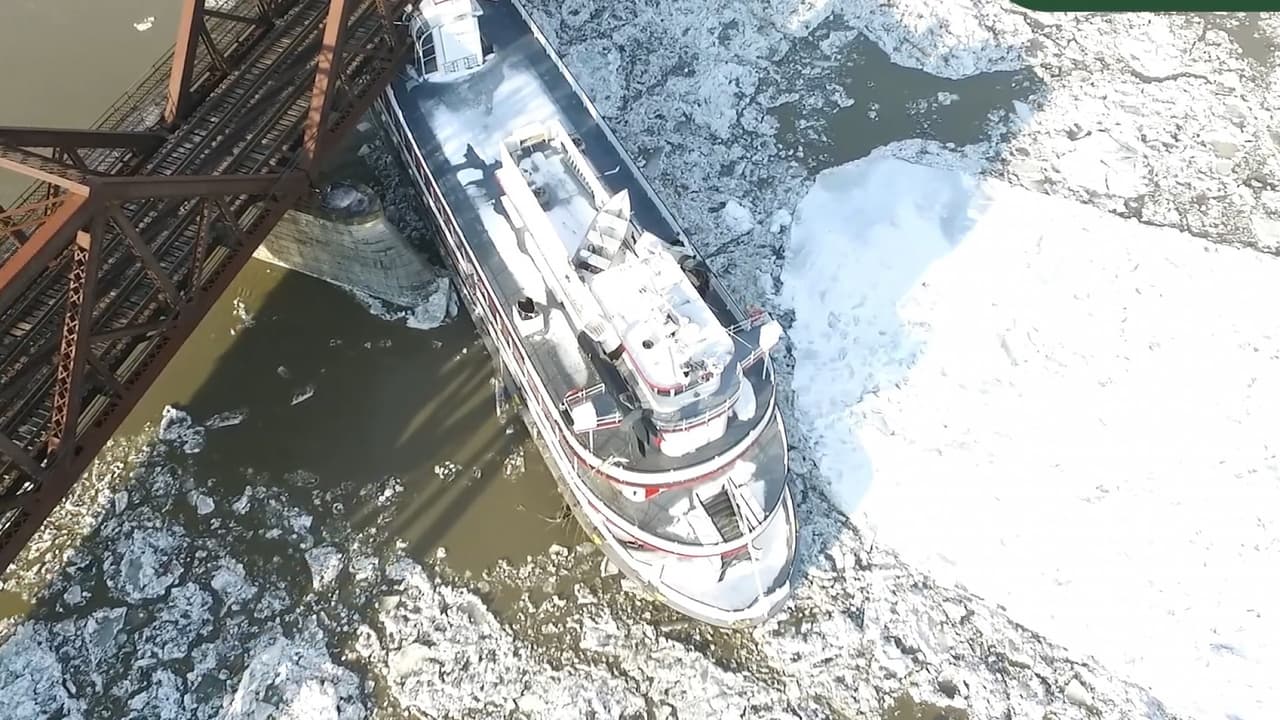 Barcos chochan contra puentes de NY tras ser desprendidos de sus embarcaderos por bloques de hielo