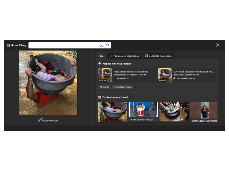 Además, con una búsqueda inversa de imágenes en Bing vimos que la foto también ha sido atribuida erróneamente a las inundaciones de Tabasco (México) de 2020. AFP Factual hizo la verificación en su momento.