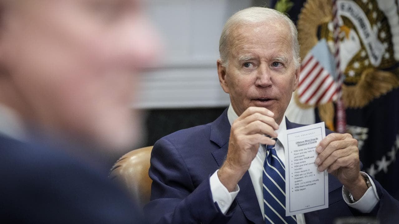 Asistentes a un encuentro con ejecutivos de la industria eólica pudieron leer lo que decía la lista de instrucciones que tenía en sus manos Joe Biden cuando el presidente mostró el papel accidentalmente. Sigue las últimas noticias en Univision.