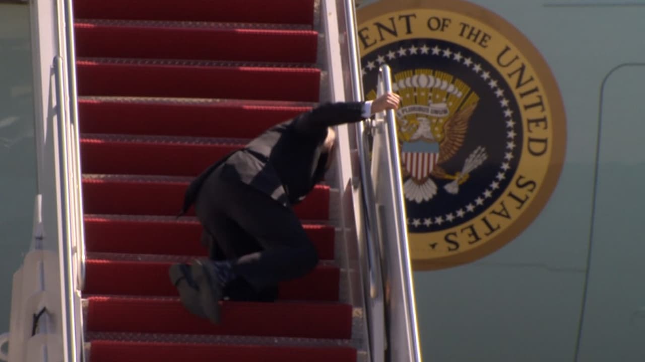 El presidente Joe Biden tropezó en las escaleras del avión presidencial este viernes. Se levantó rápidamente y no parece que haya sufrido ningún daño. Más noticias aquí.