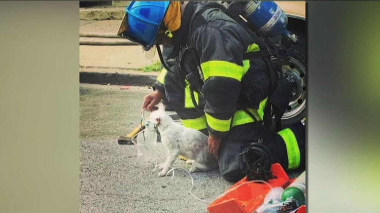 El minino quedó atrapado en el interior de la casa donde vivía, uno de los bomberos lo rescató y le dio los primeros auxilios para que no muriera.