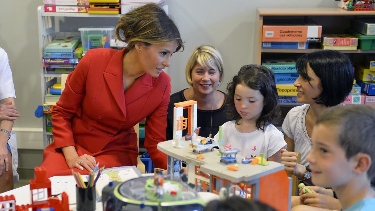 "Bonjour, bonjour": Melania Trump habla en francés con los niños de un hospital en París