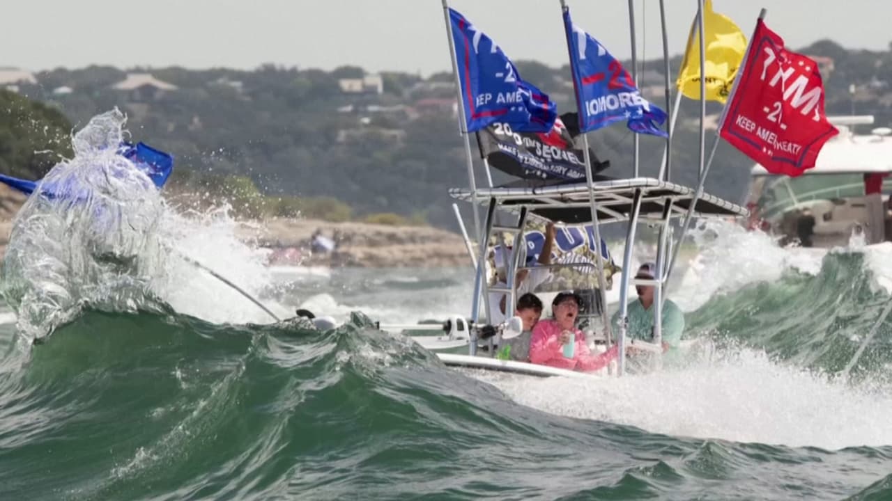 Las imágenes muestran varias embarcaciones con banderas de Trump naufragando. 5 botes se hundieron. Los medios dicen que hubo que rescatar a las personas del agua, pero no hubo informes inmediatos de heridos.