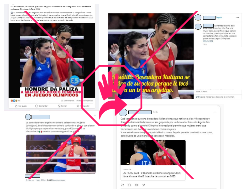 “Hombre da paliza a mujer en boxeo femenino en Juegos Olímpicos”, “¡Insólito! boxeadora italiana se retira de su pelea porque le tocó contra un trans argelino”, entre otras afirmaciones, se leen en redes sociales desde que Imane Khelif, boxeadora argelina, compitió contra Ángela Carini, de Italia este 1° de agosto de 2024.