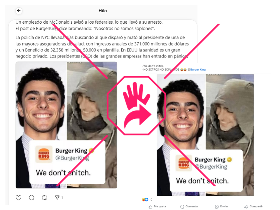 Burger King NO posteó en X “nosotros no delatamos”, en alusión al caso del asesinato del CEO de UnitedHealthcare