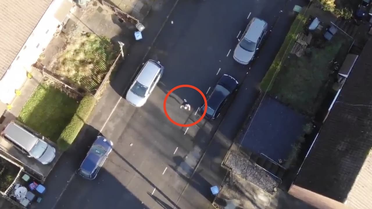 Un sospechoso logró escabullírsele a un grupo de policías en un barrio residencial en Matlock, Inglaterra, pero las autoridades estaban utilizando un dron durante la persecución y el hombre no tuvo escapatoria.