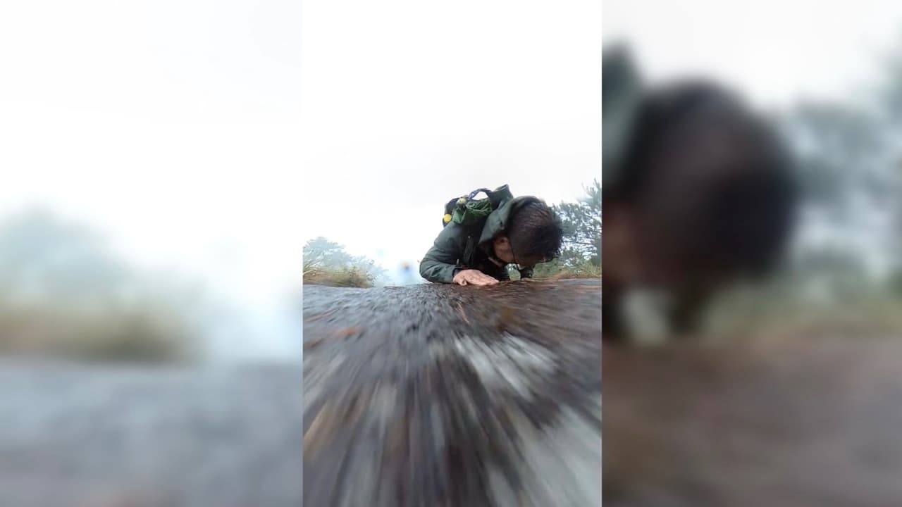Las dramáticas imágenes muestran el momento en el que el hombre, Yang Meng, se resbaló y cayó por una empinada montaña mientras hacía senderismo en Anhui, China. El momento fue captado por la cámara de 360º del senderista.