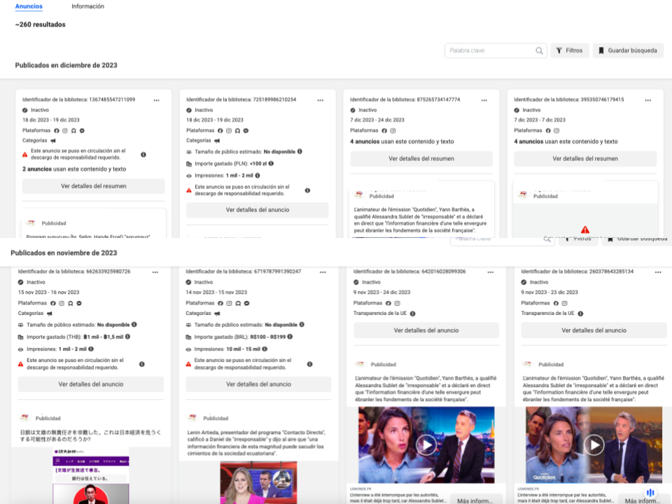 Meta. Biblioteca de anuncios. 18 de enero de 2024.