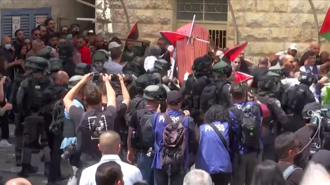 Caos y macanazos de la policía en funeral de periodista que murió por un disparo en Cisjordania