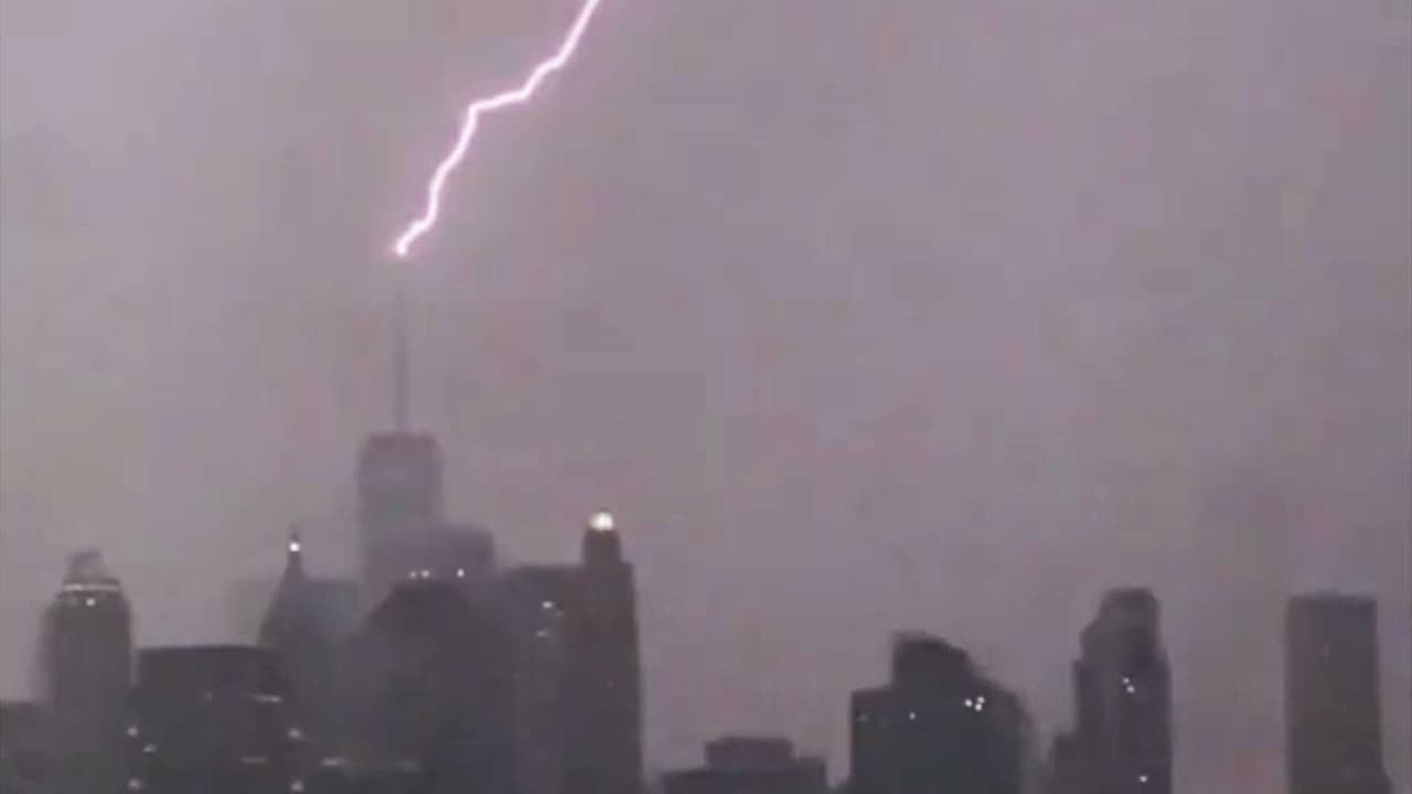 Captan el video el momento en que un rayo cae en el One World Trade Center a la llegada de la tormenta Henri a Nueva York