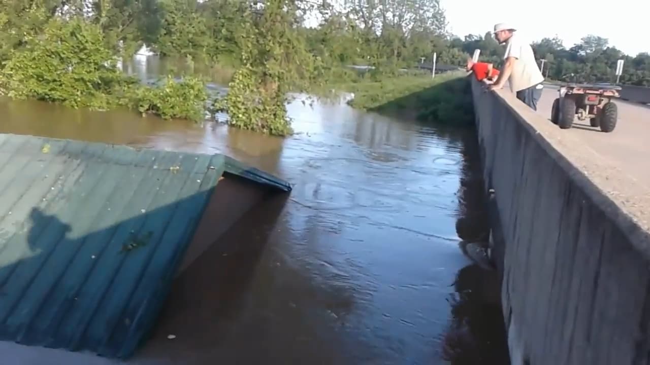 Una familia grabó imágenes del momento en el que una cabaña choca contra un puente en Reyno, Arkansas. Mientras que en Louisiana un bus escolar quedó atascado en una carretera inundada. Las fuertes lluvias han provocado que muchos ríos alcancen niveles históricos en varios estados del centro norte y sur de EEUU.