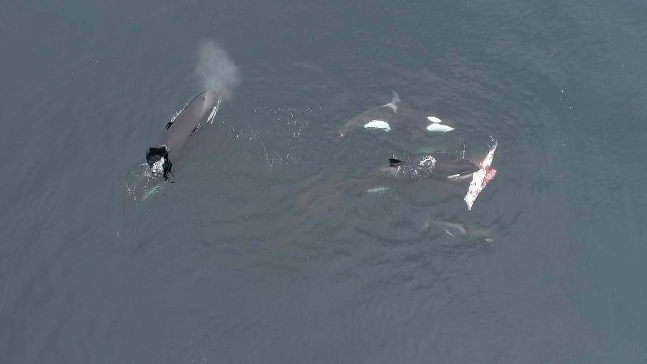 Captan por primera vez a una manada de orcas devorando a un delfín