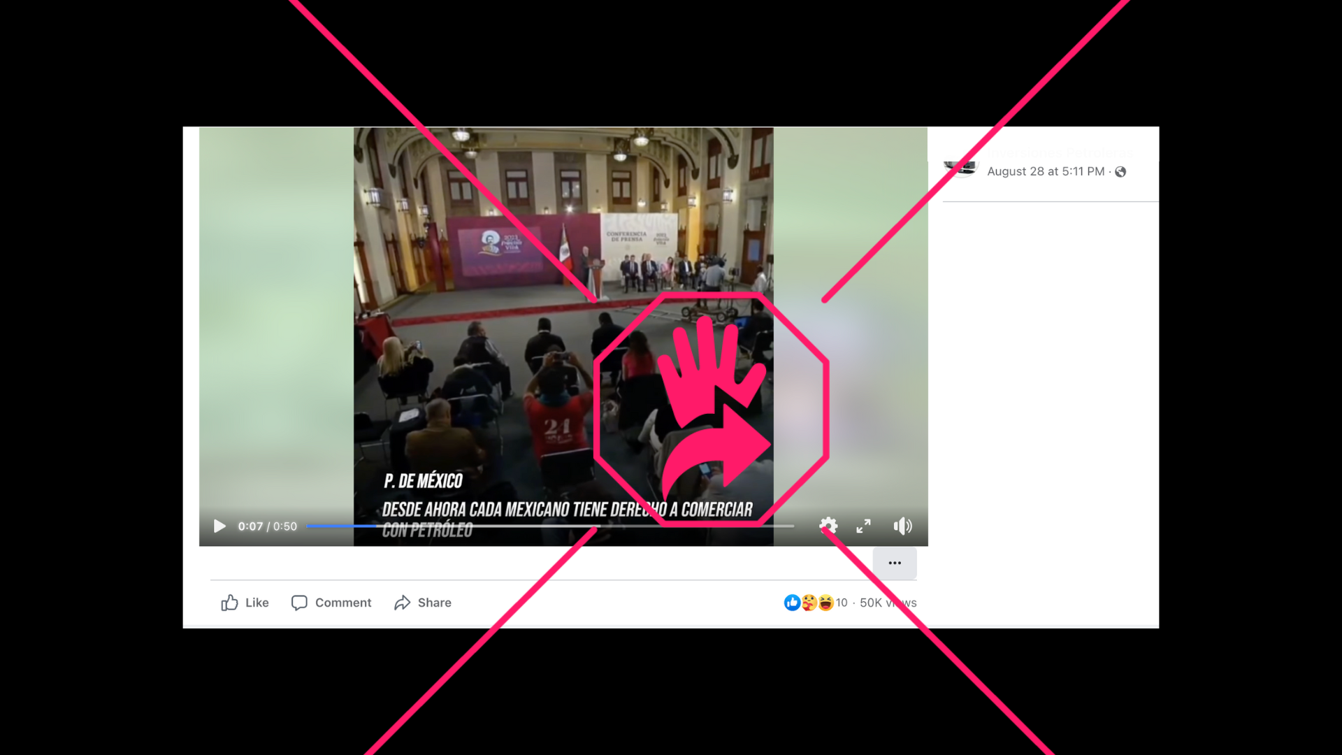 Flores Cartas nos proporcionó el video del evento en el que participó Slim, publicado en septiembre de 2022. Tras revisarlo, pudimos confirmar que, aunque Slim menciona la palabra “petróleo” (a partir del minuto 1:29:54), en ninguna parte de la grabación, que dura 1:35:56 minutos, se escucha que promueva una plataforma de inversiones en petróleo ni que diga que “las inversiones en petróleo son lo que te puede hacer rico”, como indica el post desinformante.