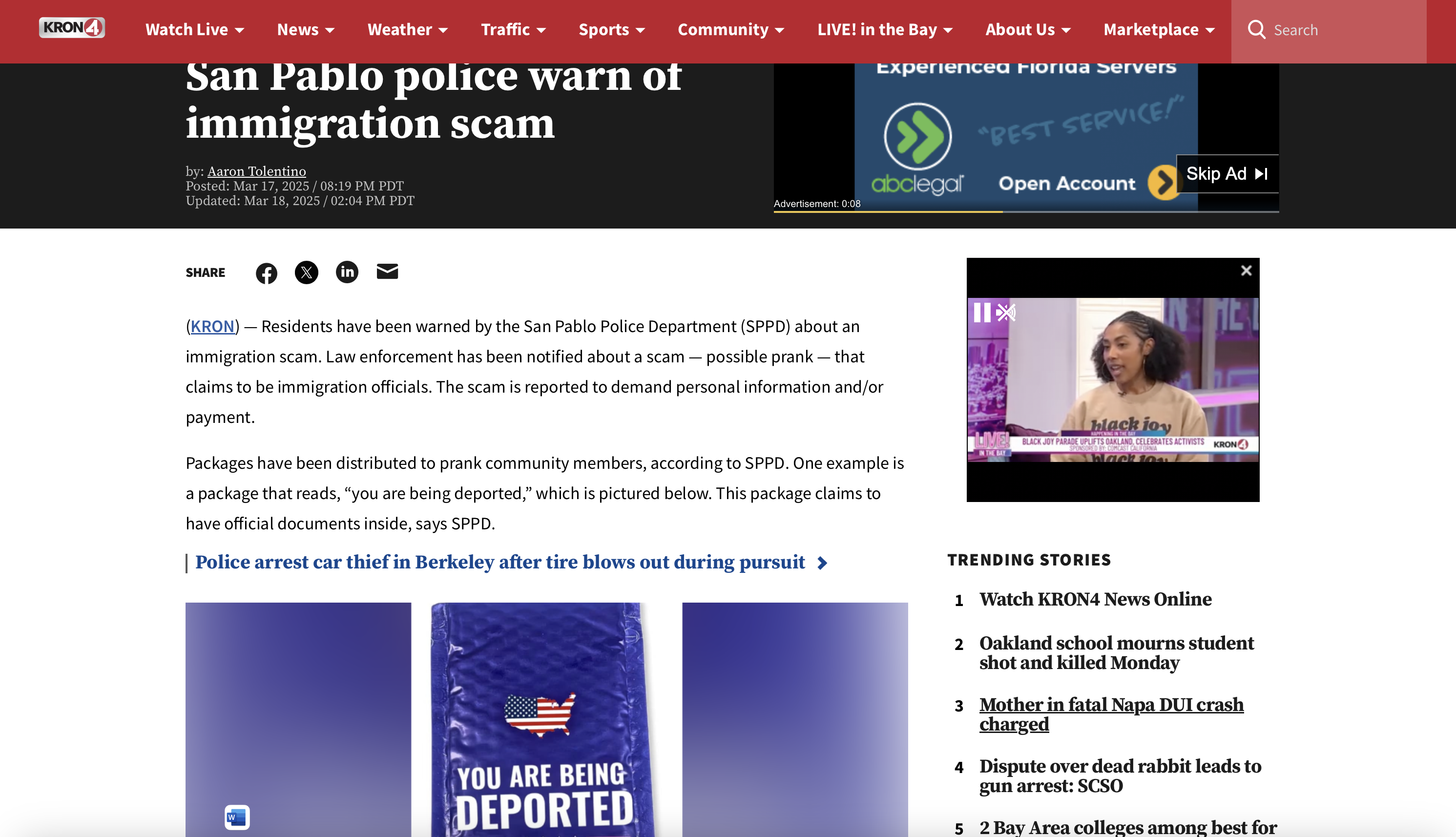 “Los residentes han sido advertidos por el Departamento de Policía de San Pablo (SPPD) sobre una estafa relacionada con inmigración”, reportó a su vez Kron4 , un medio local de California, refiriéndose a estos sobres azules que señalan la supuesta deportación y explicando también que puede tratarse de una “posible broma pesada”.