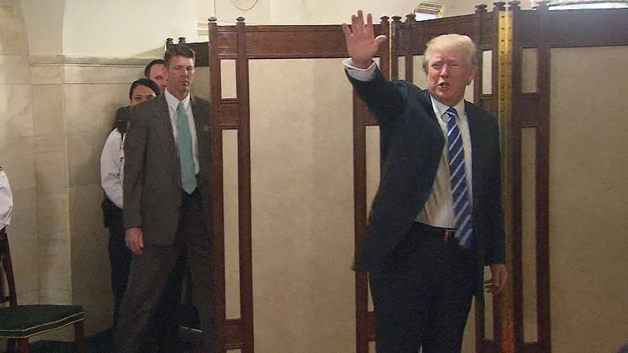 Video Trump aparece por sorpresa en un tour en la Casa Blanca