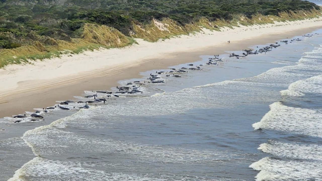 Casi 200 ballenas mueren tras quedar varadas en una playa por más de 24 horas