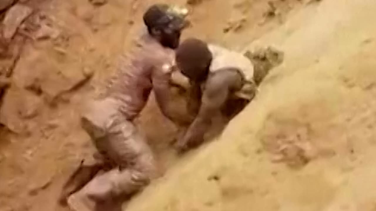 Cavando a mano: nueve mineros logran salir inesperadamente de una mina de oro colapsada