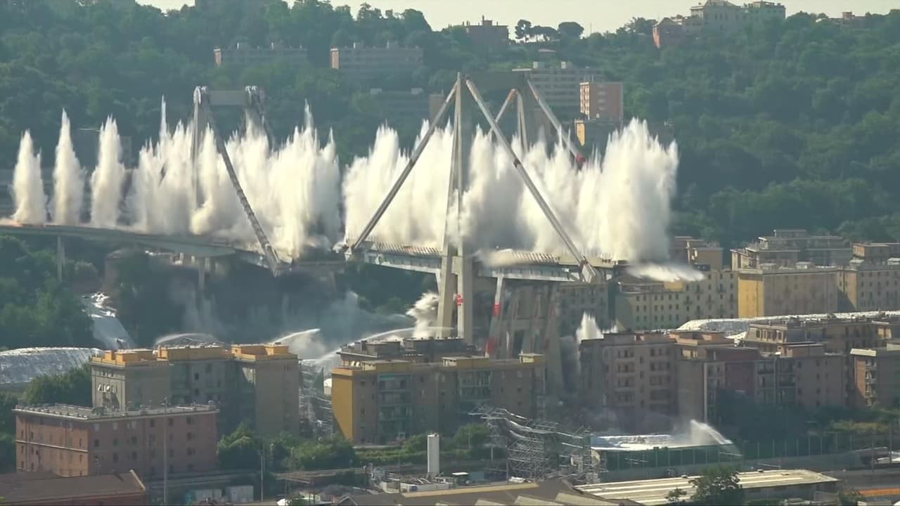Cayó en 3 segundos: demuelen el puente de Génova tras el derrumbe que causó 43 muertos