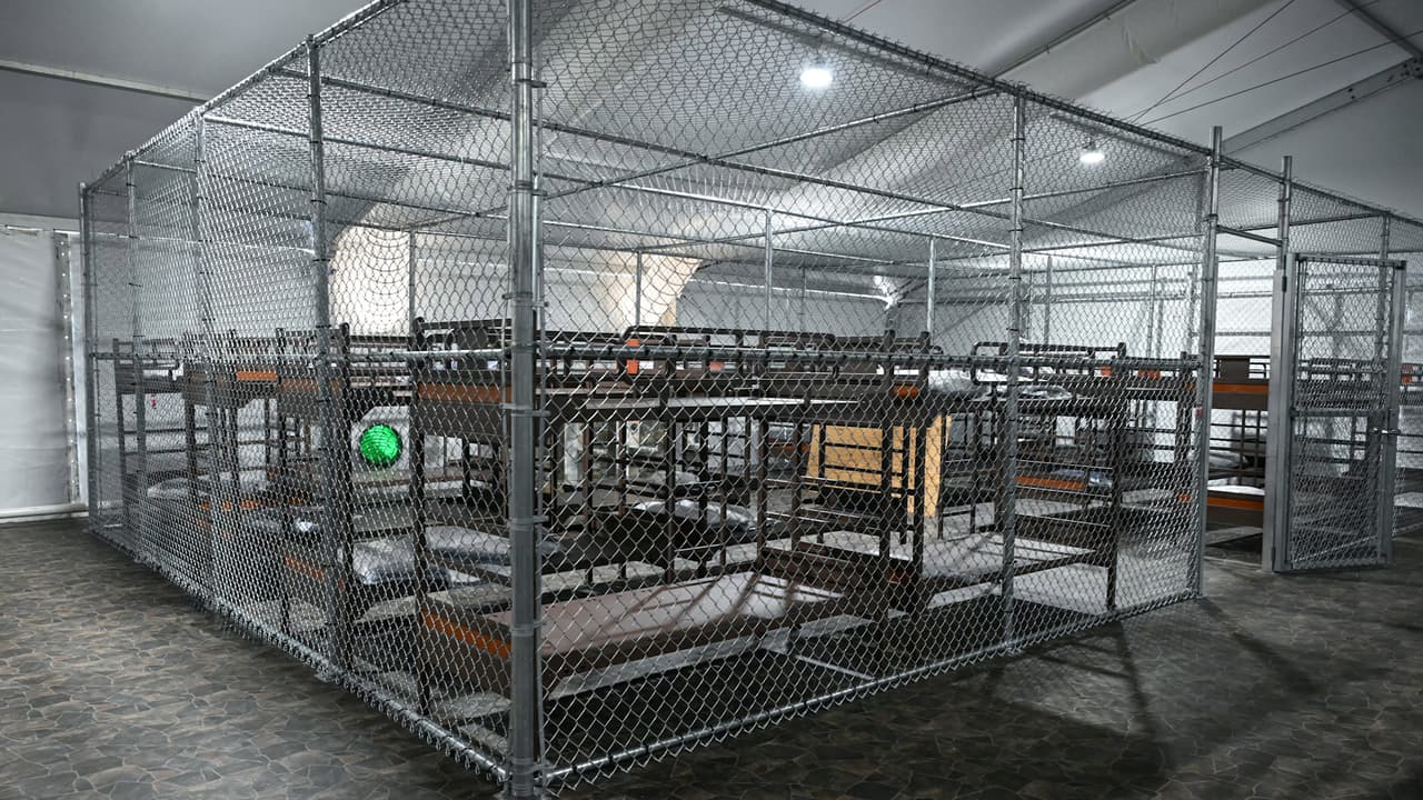 La visita del presidente Trump al centro de detención permitió el acceso a medios que pudieron rescatar las pocas imágenes que se tienen de la instalación destinada a apoyar las detenciones de inmigrantes para la campaña de deportaciones del gobierno. Más información en