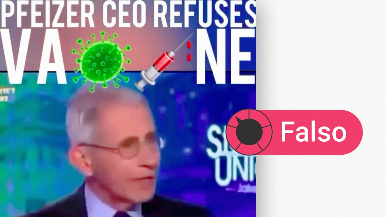 Hay un video que circula en redes sociales que dice falsamente que Albert Bourla, CEO de Pfizer, no pensaba vacunarse contra el covid-19. También sugiere que el doctor Anthony Fauci ha tenido dudas sobre someterse al test de descarte del coronavirus. Con frases editadas y sin contexto, el video presenta información manipulada que busca generar desconfianza en el proceso de vacunación contra el covid-19.