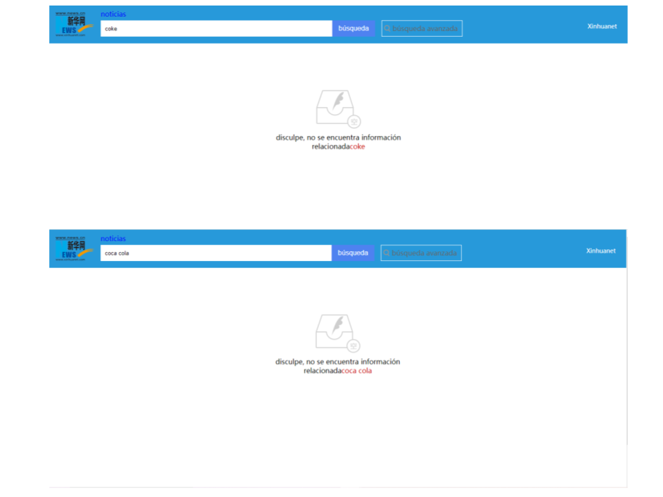 Revisamos la versión en español de la agencia de noticias del gobierno chino, Xinhua, y no hallamos en sus informaciones nada relacionado con Coca-Cola o Coke (en inglés). Si el gobierno o el “Comité Central Chino para la Calidad de los Alimentos”, como afirma la cadena de WhatsApp, hubiese tomado una decisión de prohibición de una bebida para el país, se hubiese dado a conocer por esta vía.