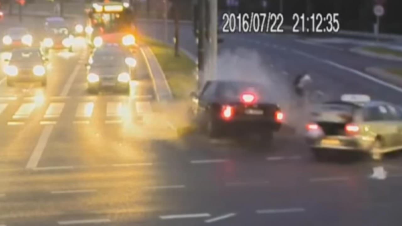 El accidente ocurrió en la ciudad de Olsztunie, Polonia. Donde dos vehículos colisionaron luego de que uno de estos cometiera una infracción, de no haber ocurrido el accidente el ciclista seguramente hubiese salido gravemente lesionado.