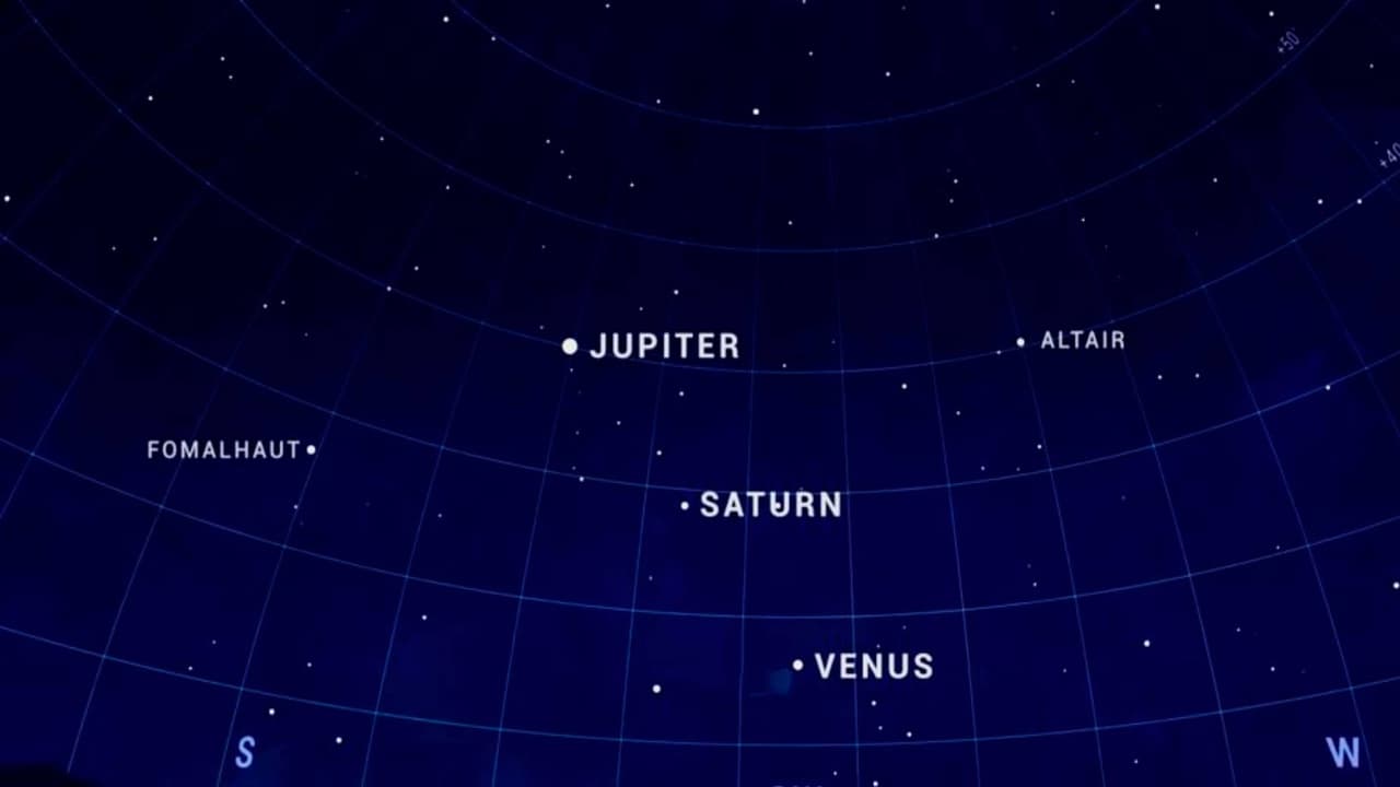 Según la revista especializada Space, los cinco planetas visibles a simple vista (Venus, Mercurio, Saturno, Júpiter y Marte, en ese orden) se alinearán en el cielo del horizonte hacia el suroeste este 28 de diciembre.