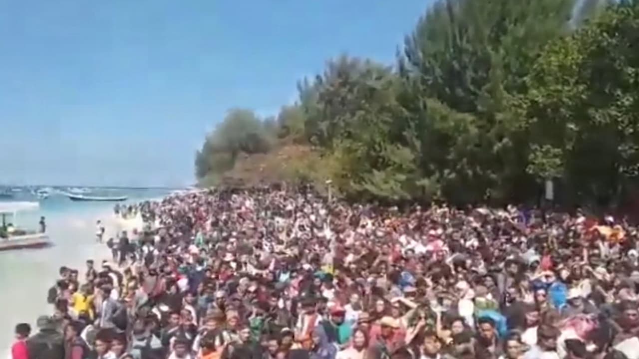 Socorristas publicaron el video registrado en la playa de Trawangan, en las paradisíacas Islas Gili, repleta de turistas a la espera de ser evacuados tras el terremoto de magnitud 7 que sacudió Indonesia, y que deja más de 90 muertos por el momento. Se estima que 200 turistas fueron rescatados y otros 800 siguen a la espera.