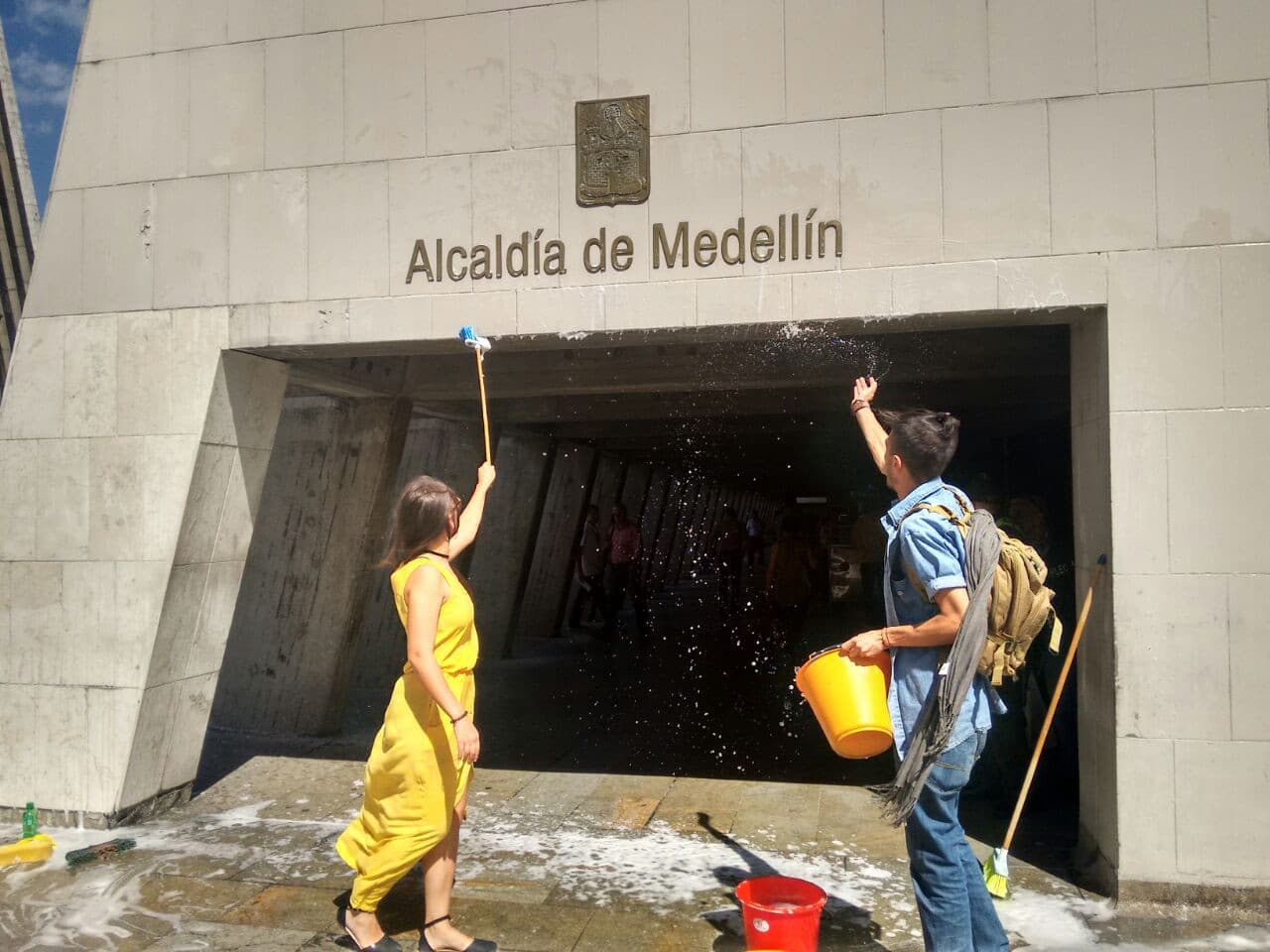 Suárez, quien trabaja en una agencia publicitaria, es uno de los creativos más influyentes detrás del movimiento. Cuando salió la noticia de la captura del secretario de seguridad, por ejemplo, propuso ir a lavar el nombre de la alcaldía. La imagen de los activistas en la entrada del edificio municipal cepillando con agua y jabón el escudo de la ciudad creció como espuma en redes sociales.