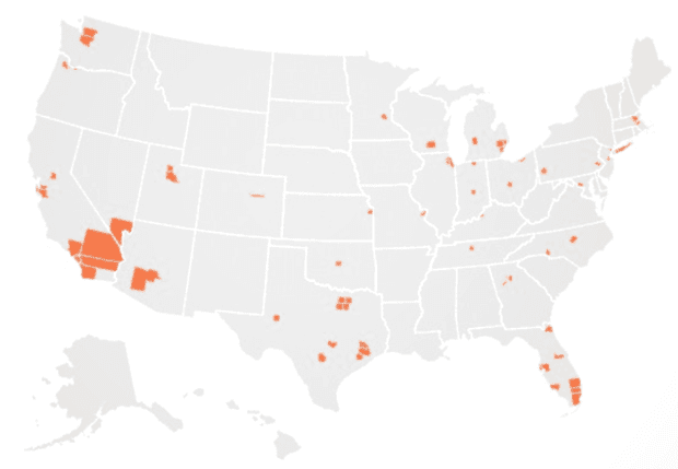 Muchos de los condados líderes en inauguraciones se encuentran en grandes áreas metropolitanas en la Franja del Sol: ciudades como Miami, Tampa, Orlando, Phoenix y Charlotte. El reporte también nota que condados de área industrial conocida como el “Rust Belt” —entre ellas el condado Erie de Buffalo, el condado Monroe de Rochester y el condado Allegheny en Pittsburgh— todas tuvieron recuperaciones fuertes.