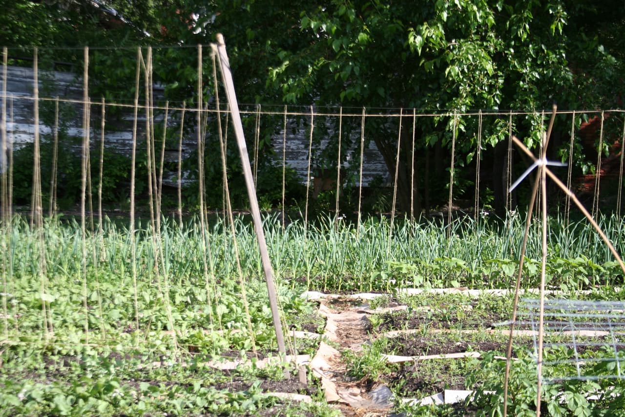 Trimmer espera cultivar la mayor parte de su propia comida con una cantidad sobrante suficiente para dejar algunos alimentos en los portales de sus vecinos. Para cuidar sus plantas contra gatos merodeadores y faisanes hambrientos, fabricó un espantapájaros de tablas de madera y una lata de palomitas de maíz pintada de un nuevo color. Rellenó al espantapájaros con bolsas de plástico y lo vistió de ropa de una tienda de segunda mano. Esto no espantó a las aves: igual decimaron a sus arándanos.