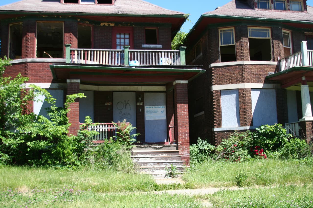 DETROIT, Michigan.—En una tarde soleada de verano, un camión de helados se encuentra estacionado cerca de la intersección de las calles Woodrow Wilson y West Euclid en Detroit. Está delante de dos casas abandonadas que han sido clausuradas con tablas de madera. Las casas tienen los patios medio hundidos y delante de ellos el pasto te llega casi hasta las rodillas. Sus puertas llevan letreros diciendo que están en el proceso de ejecución hipotecaria y el traslado inminente al Banco de Tierras de Detroit. Se oye el tintineo del camión a lo largo de la cuadra junto con el de unos carrillones. Cerca, un hombre maneja un tractor cortacésped en círculos por un lote vacante. Otro va dándoles martillazos a clavos en sus escaleras delanteras que están cubiertas de césped artificial.