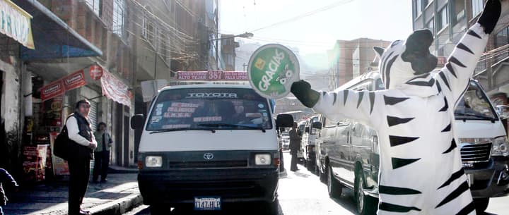 El Programa Cebras nació en las entrañas del Gobierno Municipal de La Paz en 2001, tras una visita a la Bogotá en la época en que el alcalde de la capital colombiana era Antanas Mockus. Mockus, que en la década de los 90 se disfrazó de Supercívico para demostrar a los ciudadanos que los comportamientos sí importan, había lanzado un ejército de mimos a la calle para promover la educación vial, y eso inspiró al funcionario que viajó desde Bolivia para analizar algunas de sus políticas. Pero había detalles que no le convencían.